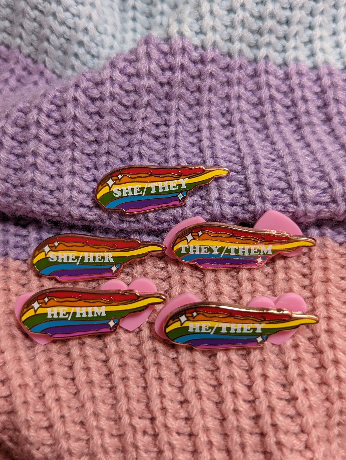 ♡ 1″ Rainbow hard enamel plating, hard to wear down, along with heart rubber clutch (colors range on rainbow pins)